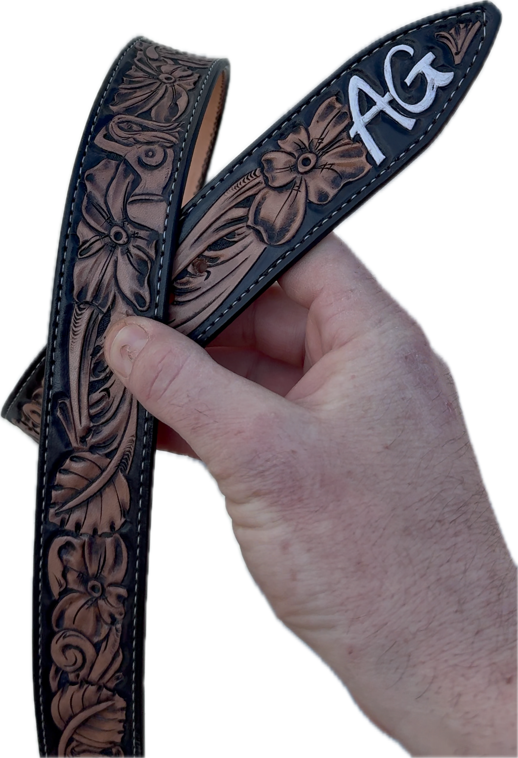 Limited edition “Red Dog” belt. Choose your size and what initials, brand or logo you would like at the tip.